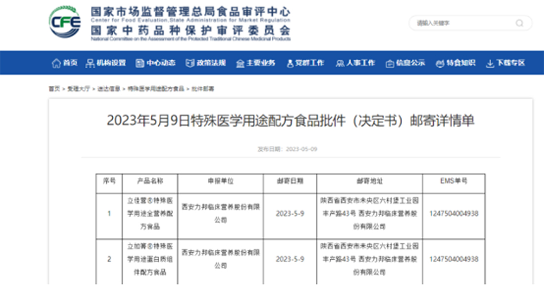 2023年5月9日,國家市場(chǎng)監督管理總局公布,力邦營(yíng)養的兩款產(chǎn)品: